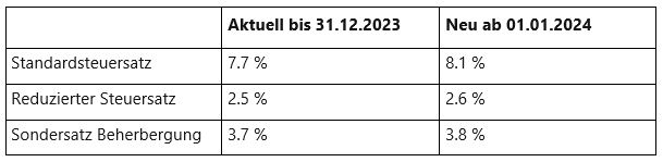 Aufgrund der Erhöhung der Mehrwertsteuer per 01.01.2024 sind gewisse Buchungskonstellationen und Rechnungsstellungen anzupassen.